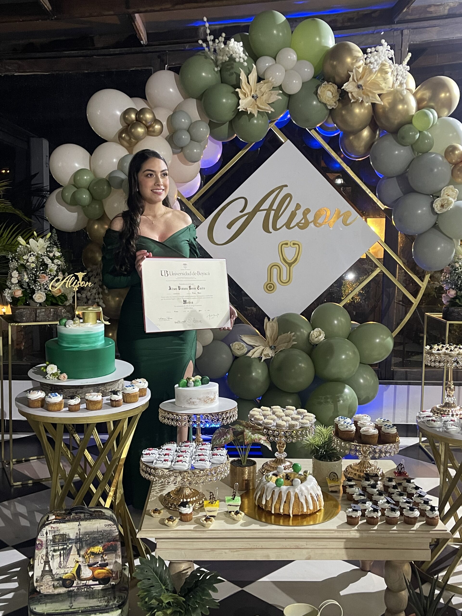 Pasteles personalizados y mesa dulce.
